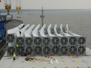 The propellers, a component required for the power generation unit, are shown in the diagram above. They are hoisted into the hopper in batches using a ship crane.